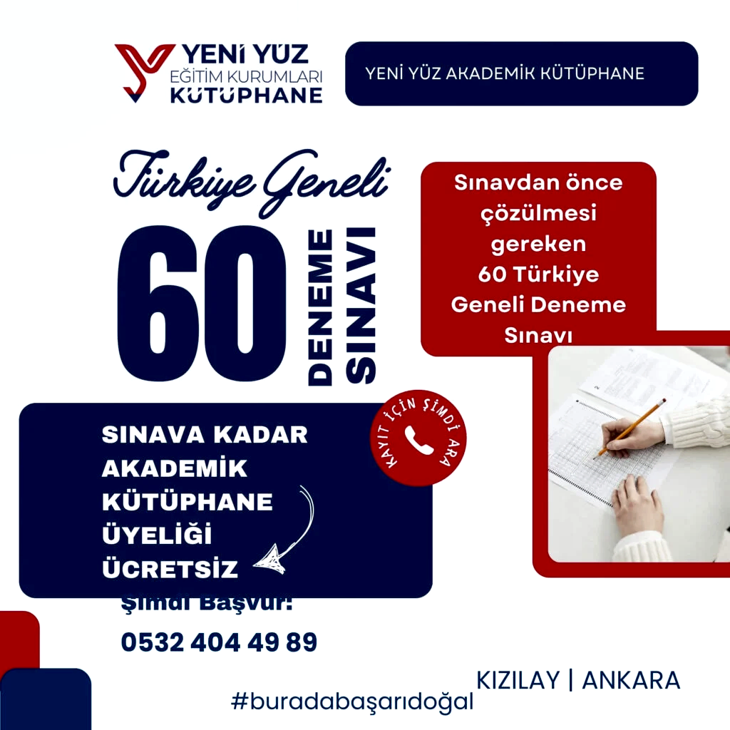 Sınavdan önce çözülmesi gereken 60 Türkiye Geneli Deneme Sınavı. Üstelik Sınava kadar Akademik Kütüphane Üyeliği HEDİYE!